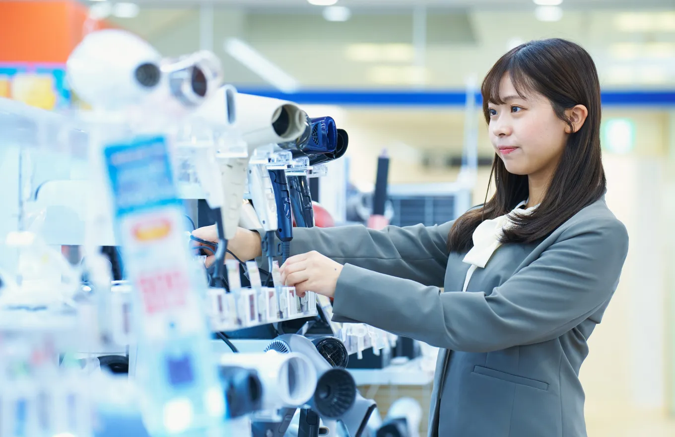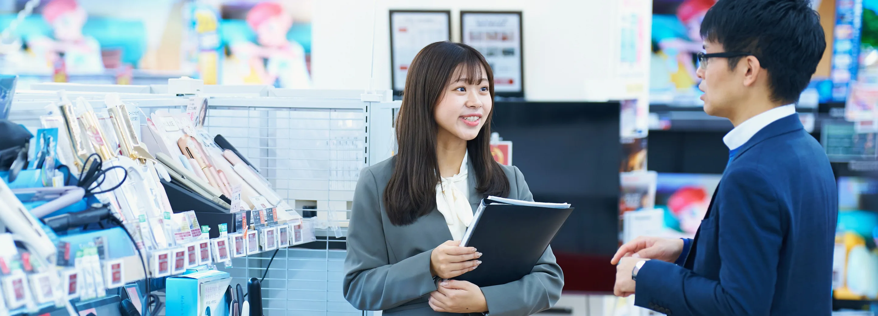私たち営業は、本部で導入が決まった商品を扱うため、いかにその売上を最大化できるかという「売り場づくり」が勝負です。お客様の目にとまりやすい「エンド」という場所に商品展開していただけるよう、商品の実績データや「お店の役にも立てる」という根拠を示して商談します。また、単に商品を並べるだけでなく、ヘアアイロン・ドライヤー・シャワーヘッドというように複合的なライフスタイルの提案を心がけています。セットで購入してもらえるような付加価値をつけることで「人々の生活がより豊かになるようにお手伝いする」ことを目指しています。