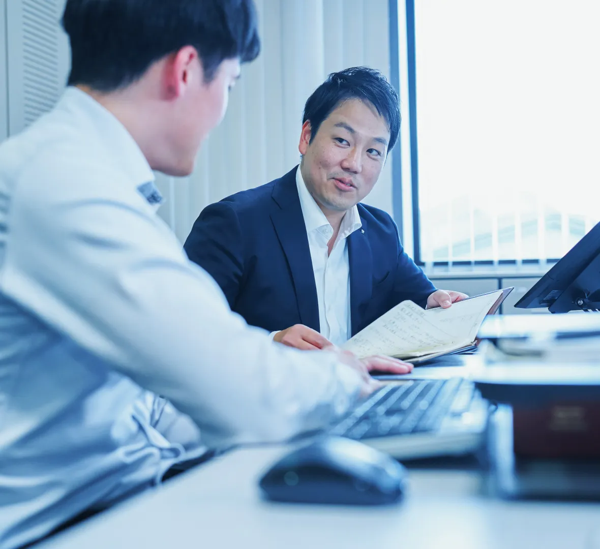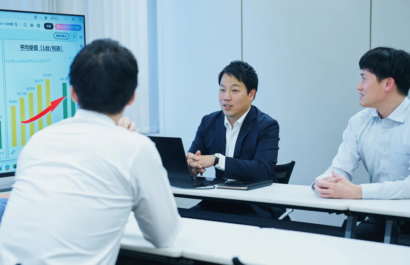 2025年4月に首都圏事業所に転勤となり、現在は本部商談窓口の責任者として3人のチームメンバーを率いています。プレイヤーとして自分の数字だけに集中していたこれまでとは違い、いまはメンバーそれぞれの成長をサポートし、チーム全体の成果を最大化することが私の役割。個性や特性を見極め、どうすれば彼らがステップアップできるかを日々試行錯誤しているところですね。マネジメントはまだ手探りの部分も多いですが、まわりの先輩や上司に相談しながら奮闘中です。
