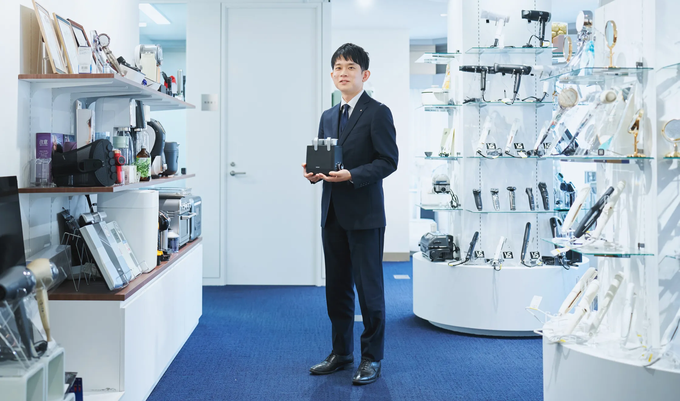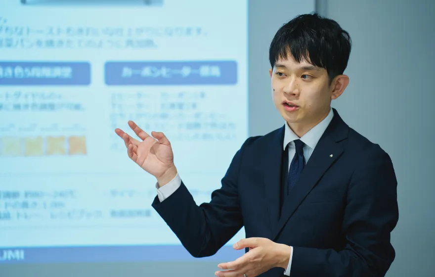 私が小泉成器を知ったきっかけは、大学の合同説明会でした。就活当初は金融や医療分野といった業界を見ていたのですが、正直なところ明確な志望理由があったわけではありません。そんな折り、その説明会で小泉成器の「メーカー&ベンダー」というスタイルを知り、興味を持ったというわけです。自社ブランドに加えて、私でも知っているような多くのブランドを取り扱っているという点に惹かれましたし、数多くの商品を取り扱えるという点で営業としての面白さや可能性を感じました。